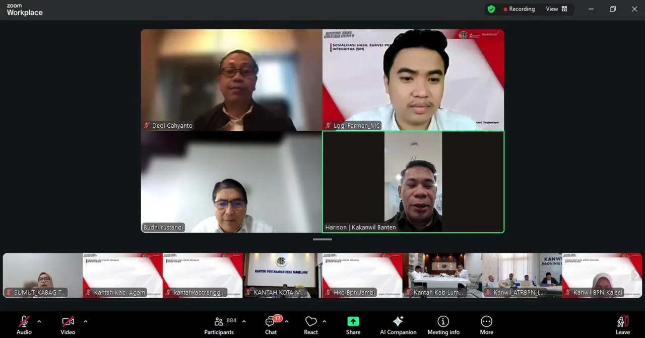 Jakarta – Hasil Survei Penilaian Integritas (SPI) untuk Kementerian Agraria dan Tata Ruang/Badan Pertanahan Nasional (ATR/BPN) Tahun 2025 telah dirilis oleh Komisi Pemberantasan Korupsi (KPK). Indeks Integritas Nasional ATR/BPN secara agregat berada di angka 71,3. Tenaga Ahli Menteri Bidang Ekonomi Pertanahan, Dedi Noor Cahyanto, meminta jajaran, khususnya Kepala Kantor Wilayah (Kakanwil) BPN dan Kepala Kantor Pertanahan (Kakantah) menempatkan perhatian serius atas angka tersebut agar bisa bertahap ditingkatkan secara signifikan.