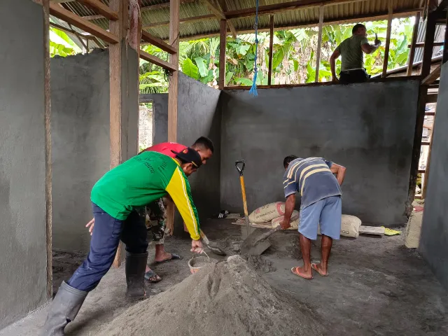 Serda Josep Tupalesy salah satu personel TMMD mengatakan, “Pekerjaan plester dan pemasangan dinding triplek ini kami lakukan bersama warga agar rumah segera selesai dan bisa ditempati dengan lebih layak,” ujarnya.