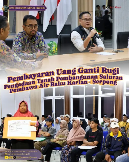 Kabupaten Tangerang, 11 Maret 2026 – Kantor Pertanahan Kabupaten Tangerang melaksanakan kegiatan pembayaran uang ganti rugi pengadaan tanah untuk pembangunan Saluran Pembawa Air Baku Karian – Serpong (KSCS) yang diselenggarakan di Aula PTSL Kantor Pertanahan Kabupaten Tangerang.