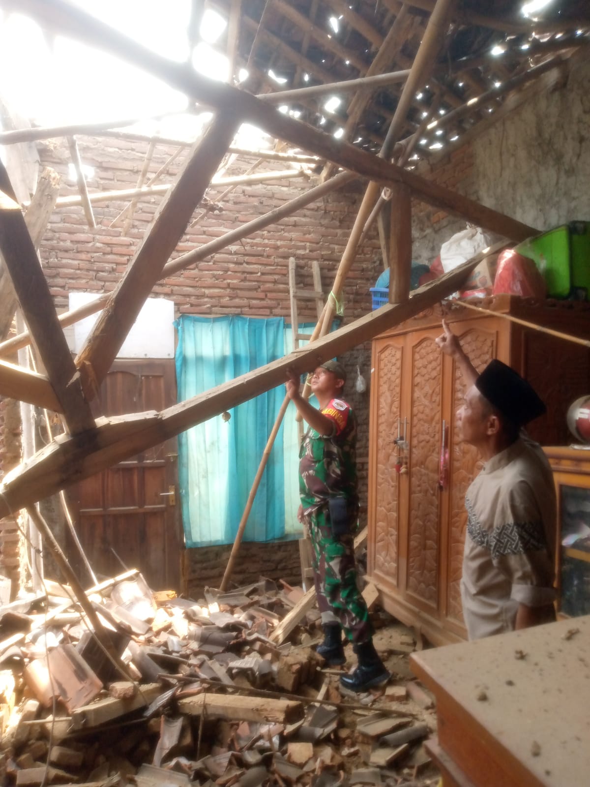 Petugas terus memantau kondisi rumah yang rusak dan memastikan warga mendapat bantuan darurat.